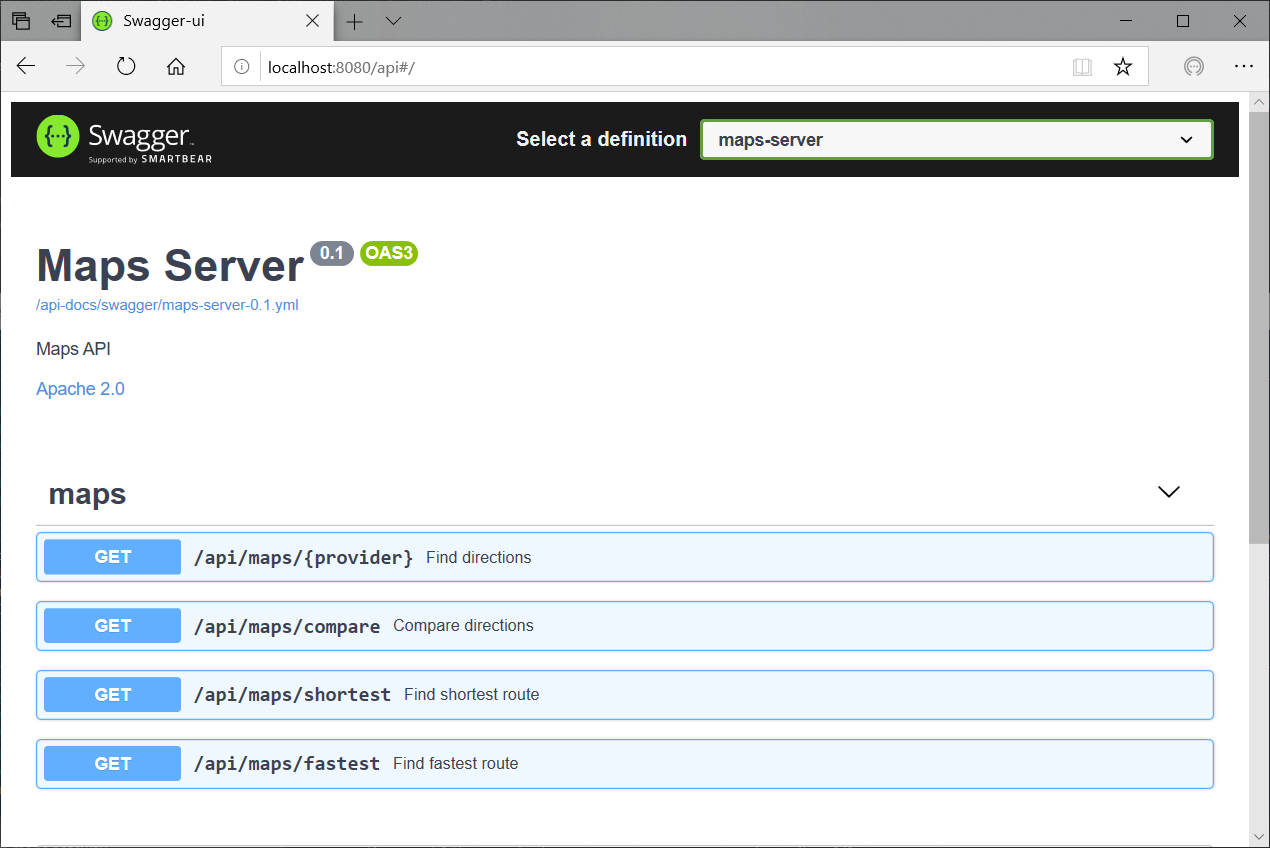 curl "http://localhost:8080/api/maps/apple?src=google&dest=apple"