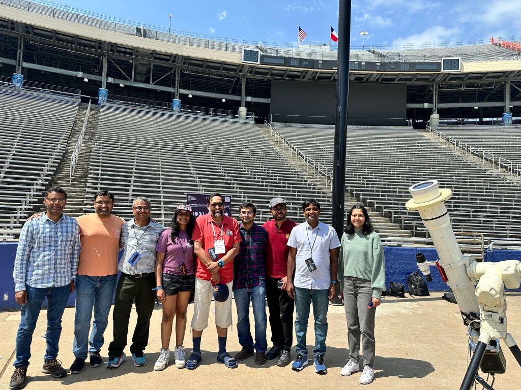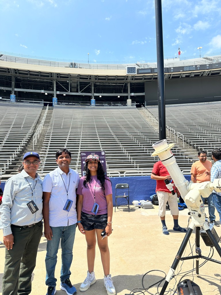 A team of Indian researchers from ARIES (Aryabhatta Research Institute of Observational Sciences) traveled with scientific instruments to study the sun during the total solar eclipse at the Cotton Bowl Stadium in Dallas. The equipment used to capture scientific data during the eclipse was quite heavy, and I couldn’t help but imagine the struggle that the team must have gone through to transport them from across the world. Despite their efforts, the weather was not cooperative until just before the totality, when clouds cleared up and allowed for a successful recording of the extraordinary phenomenon. The team was extremely happy with the results, and their hard work and dedication ultimately paid off during and after the totality.