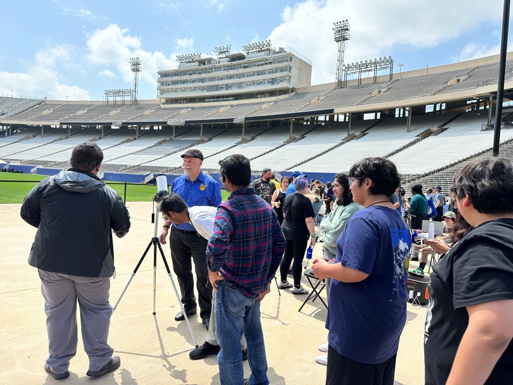 My family volunteered at the tri-agency solar eclipse viewing event for NOAA, NASA, and NSF at the Cotton Bowl Stadium in Dallas. We operated a Celestron Solar Telescope that was made available for public viewing. Witnessing this celestial event alongside thousands of eclipse watchers was an incredible experience.